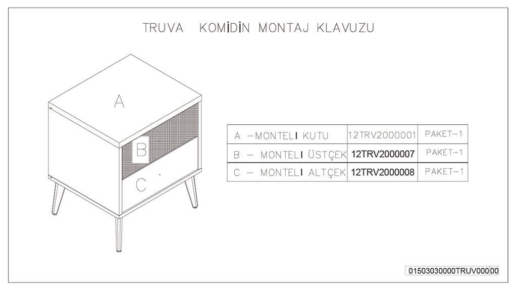 12TRV2000007KMKM, Komodın Montelı Üst Çekmece/Trv Tks YPY